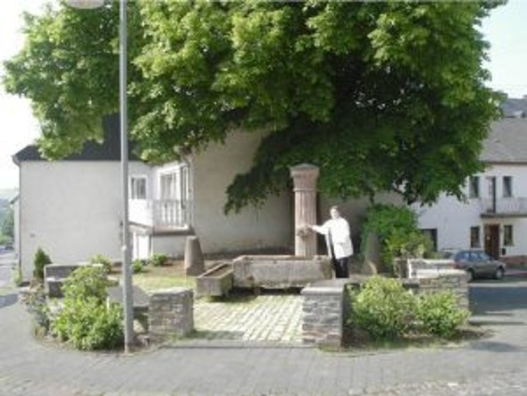 Dieser idyllische Platz mit dem Brunnen unter der alten Linde direkt vor dem heute verschwundenen Zufahrtstor in den tiefer gelegenen Burgbereich dürfte schon im Mittelalter das Zentrum der Dorfgemeinde gewesen sein. Interessant sind vor allem die beiden zeitlich nicht einzuordnenden konischen Sandsteinpylone unter dem Baum: Es ist nicht ausgeschlossen, dass sie einmal als Markierung einer Gerichtsstätte gedient haben. Immerhin waren die Bürger von Klüsserath spätestens seit dem 16. Jahrhundert im Besitz eines Drittels der sogenannten Hochgerichtsbarkeit, d. h. sie hatten – was äußerst selten war – ein Mitspracherecht bei der Verhandlung schwerer Verbrechen, die ansonsten ausschließlich Sache des Landesherren waren.